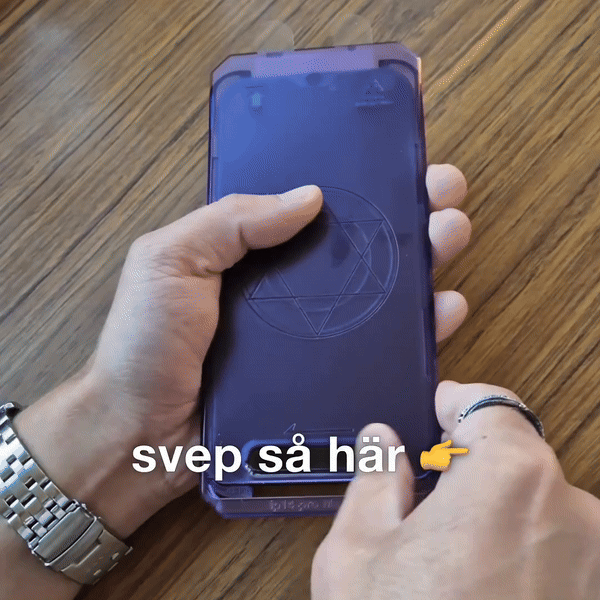Placera din telefon i den orange justeringsramen för en perfekt centrerad passform, kant till kant.